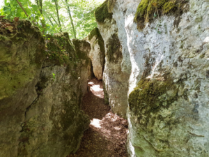 Der verschlungene Weg durch die Wolfsschlucht ist z.T. schmal und steinig und hat einige kurze, aber steile Abschnitte, deshalb sind Trittsicherheit und gutes Schuhwerk unbedingt erforderlich und Jede(r) sollte gut zu Fuß sein. Ansonsten gehen wir auf gut befestigen Wald- und Feldwegen. Die Gesamtlänge des Rundwegs beträgt gute 7 km.